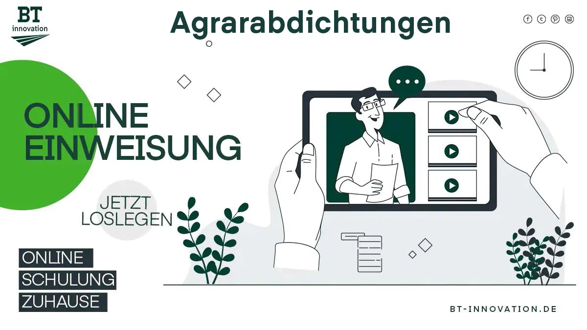 Unsere digitale Einweisung vermittelt die produktspezifische Anwendung der BTi-Agrar-Abdichtungsprodukte unter Berücksichtigung der Anforderungen der Verordnung über Anlagen zum Umgang mit wassergefährdenden Stoffen (AwSV).